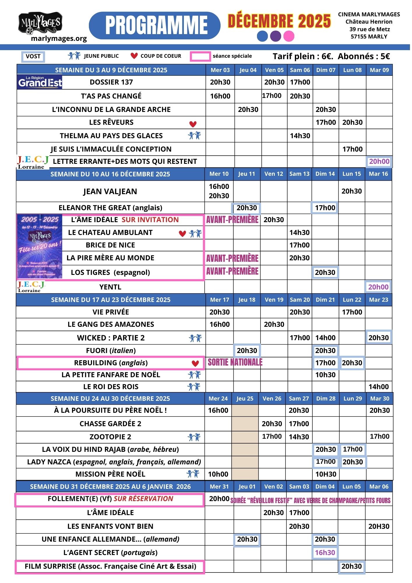 Découvrez tous les évènements de votre cinéma dans la rubrique au dessus...