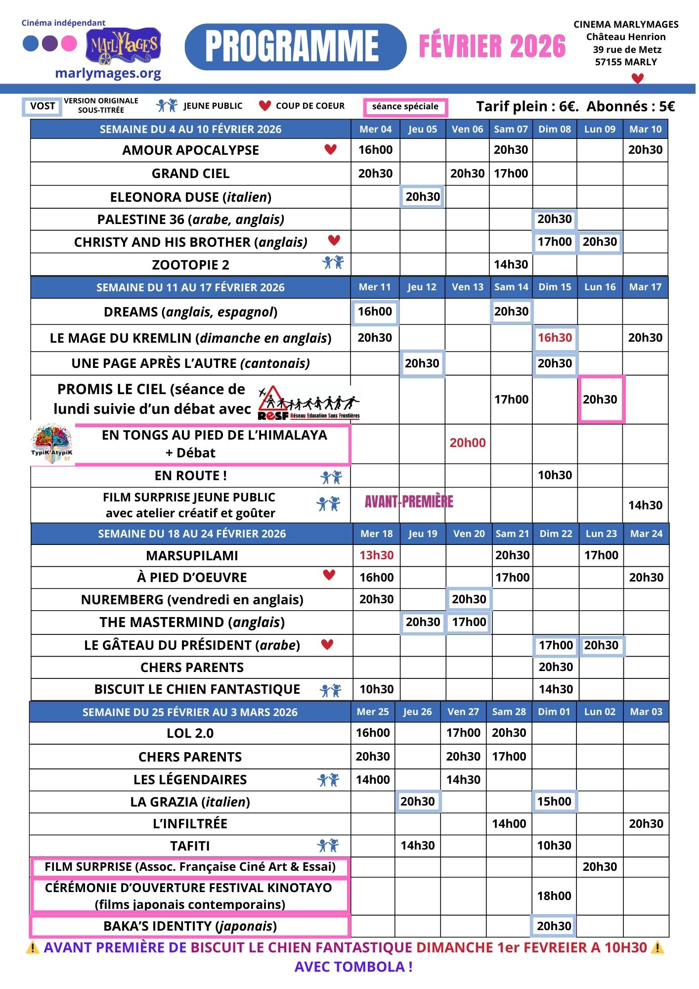 Découvrez tous les évènements de votre cinéma dans la rubrique au dessus...